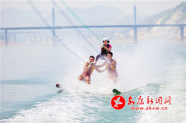 2011年,第十一屆安康龍舟節(jié)開幕式上,國(guó)家水上表演隊(duì)亮相漢江。邵向東 攝BX6安康新聞網(wǎng)