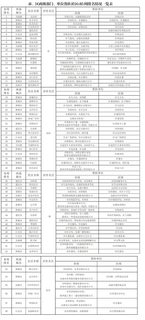 附件:市、區(qū)兩級(jí)部門、單位幫扶社區(qū)(村)周排名情況一覽表
