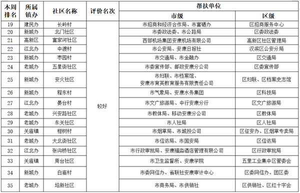 附件:市、區(qū)兩級部門、單位幫扶社區(qū)(村)周排名情況一覽表