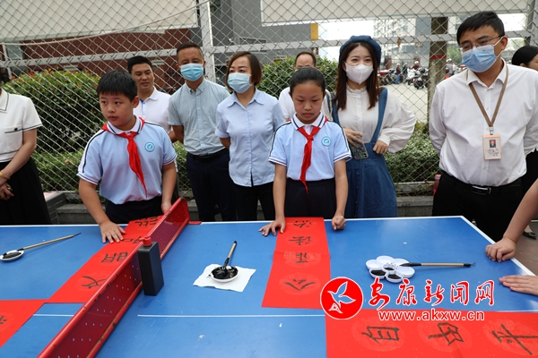 簡短的啟動儀式結(jié)束后,市創(chuàng)文辦一行參觀了社區(qū)書吧,并在運動場觀看未成年人展示活動。展示內(nèi)容主要包括現(xiàn)場書寫社會主義核心價值觀、集體花樣跳繩、籃球訓(xùn)練、獨唱、個人武術(shù)和倡議書宣讀,F(xiàn)場,同學(xué)們身著整齊的服裝,戴著鮮艷的紅領(lǐng)巾,精神煥發(fā)地來到展示場地。在熱烈歡快的節(jié)奏中,一張張笑臉洋溢著自信和陽光,舉手投足間盡顯安康少年風(fēng)采。流暢的書法、炫酷的跳繩、優(yōu)美的歌聲、靈動的棍法……孩子們的精彩表演引來一眾居民駐足圍觀,不時傳來熱烈掌聲。