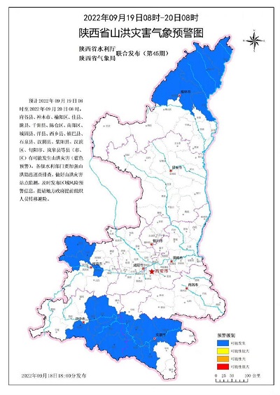 陜西省水利廳與陜西省氣象局聯(lián)合發(fā)布山洪災(zāi)害氣象預(yù)警:預(yù)計(jì)2022年09月19日08時(shí)至2022年09月20日08時(shí),府谷縣、神木市、榆陽區(qū)、佳縣、隴縣、千陽縣、陳倉區(qū)、南鄭區(qū)、城固縣、洋縣、西鄉(xiāng)縣、鎮(zhèn)巴縣、石泉縣、漢陰縣、紫陽縣、漢濱區(qū)、旬陽市、嵐皋縣等縣(市、區(qū))有可能發(fā)生山洪災(zāi)害(藍(lán)色預(yù)警)。各級水利部門要加強(qiáng)山洪隱患巡查排查,做好山洪災(zāi)害站點(diǎn)監(jiān)測,及時(shí)發(fā)布區(qū)域風(fēng)險(xiǎn)預(yù)警信息,提請地方政府提前組織人員轉(zhuǎn)移避險(xiǎn)。