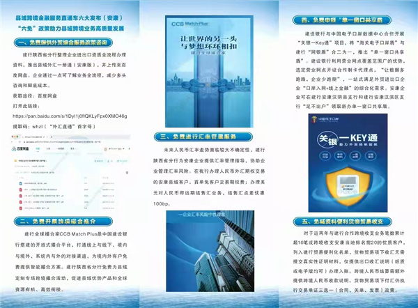 會(huì)上,中國建設(shè)銀行陜西分行相關(guān)負(fù)責(zé)人就縣域跨境金融服務(wù)直通車的模式、六免政策、外貿(mào)企業(yè)線上跨境金融產(chǎn)品進(jìn)行了介紹。