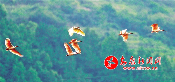 三是朱鹮已經(jīng)成為漢陰縣的“定居者”。漢陰縣生態(tài)環(huán)境優(yōu)良的一個顯著特點是河流、水庫周圍的森林覆蓋率較高,尤其是松樹林較多,這些樹種適宜朱鹮在這上面建窩繁殖。據(jù)不完全統(tǒng)計,目前漢陰縣朱鹮數(shù)量有百只以上。良好的生態(tài)環(huán)境不僅吸引了各類鳥類的到來,而且還讓朱鹮成了當?shù)亻L期的“定居者”。