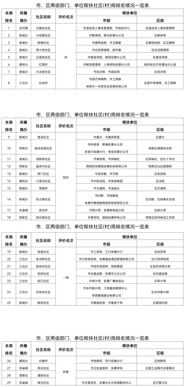 附件:市、區(qū)兩級部門、單位幫扶社區(qū)(村)周排名情況一覽表