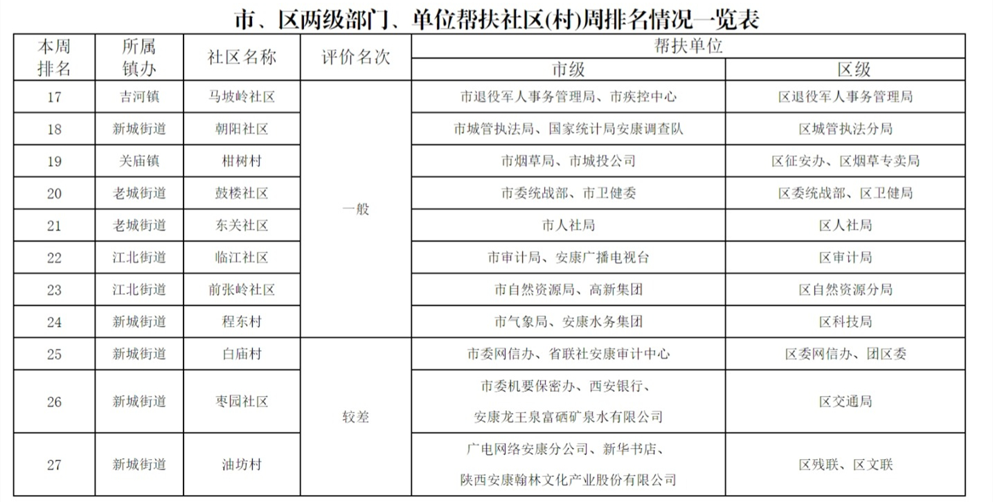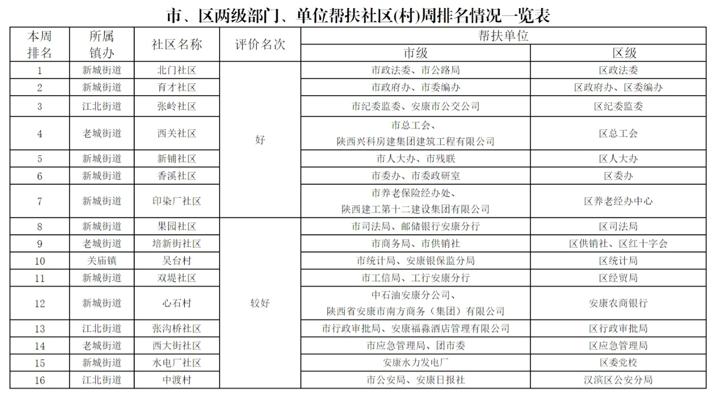 附件:市、區(qū)兩級(jí)部門(mén)幫扶社區(qū)(村)周排名情況一覽表