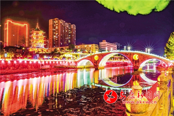12、春節(jié)期間,安康城區(qū)主要標志性建筑和橋梁霓虹燈五彩斑斕、美不勝收。