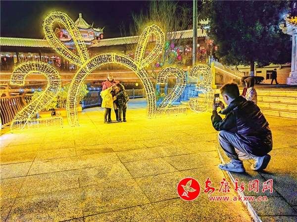 1、春節(jié)期間,寧陜縣濱河公園成了許多游客夜間拍照打卡的網(wǎng)紅地。