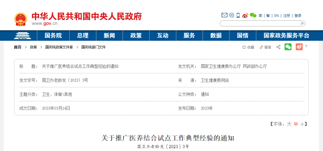 關(guān)于推廣醫(yī)養(yǎng)結(jié)合試點(diǎn)工作典型經(jīng)驗(yàn)的通知