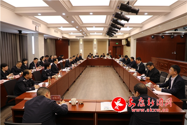 王彪一行先后到12309檢察服務(wù)中心、案管大廳、檢察公開聽證室、指揮中心、新媒體工作室進(jìn)行實(shí)地調(diào)研。王彪強(qiáng)調(diào),人民檢察院是國(guó)家的法律監(jiān)督機(jī)關(guān),是國(guó)家監(jiān)督體系的重要組成部分,在推進(jìn)全面依法治國(guó)、建設(shè)社會(huì)主義法治國(guó)家中發(fā)揮著重要作用。要堅(jiān)持黨的領(lǐng)導(dǎo),把深入貫徹黨的二十大精神作為首要政治任務(wù),貫通落實(shí)習(xí)近平法治思想,扎實(shí)抓好主題教育,不斷錘煉忠誠(chéng)干凈擔(dān)當(dāng)?shù)恼纹犯瘛R⻊?wù)中心大局,切實(shí)維護(hù)國(guó)家政治安全、社會(huì)安定、人民安寧、網(wǎng)絡(luò)安靖,主動(dòng)融入共建共治共享社會(huì)治理格局,自覺護(hù)航幸福安康建設(shè),為經(jīng)濟(jì)社會(huì)高質(zhì)量發(fā)展提供堅(jiān)強(qiáng)的司法保障。要強(qiáng)化法律監(jiān)督,依法履行好刑事、民事、行政和公益訴訟等檢察監(jiān)督職能,維護(hù)社會(huì)公平正義,維護(hù)國(guó)家法制統(tǒng)一、尊嚴(yán)和權(quán)威。要鍛造過硬隊(duì)伍,緊扣“三個(gè)年”活動(dòng)安排,全面從嚴(yán)管黨治檢,持續(xù)推進(jìn)政治建設(shè)和業(yè)務(wù)建設(shè)深度融合,提升檢察人員政治素質(zhì)和專業(yè)素養(yǎng),高標(biāo)準(zhǔn)淬煉忠誠(chéng)干凈擔(dān)當(dāng)?shù)男聲r(shí)代檢察鐵軍。