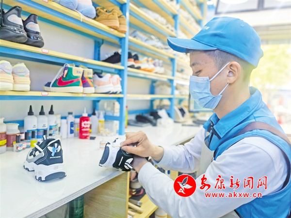 去年5月王輝遠(yuǎn)赴鄭州培訓(xùn),去年10月開業(yè)到今年4月中旬,店里的生意越來越有起色,王輝擔(dān)心的事情卻越來越多。“口碑有了,接到的單子也更多。能送來洗的鞋基本都不便宜,最貴的幾千上萬的都有。貴的鞋還是只能我洗,不然一個月洗壞那么幾雙這店開不下去。”王輝直言,現(xiàn)在最操心的就是一旦自己離開,這個店是否還能正常運(yùn)轉(zhuǎn)。