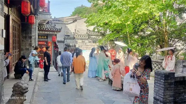 蜀河古鎮(zhèn)景區(qū)迎來(lái)客流高峰,僅假期前三天,單日接待游客超六千人。在景區(qū)各集散地,文旅中心為廣大來(lái)蜀游客提供志愿講解、旅游咨詢(xún)服務(wù);同時(shí),中心開(kāi)放一樓大廳,為游客提供座椅茶水,避暑休憩及開(kāi)放廁所服務(wù),全力提升游客游覽體驗(yàn),營(yíng)造舒心旅游環(huán)境。中心協(xié)助蜀河鎮(zhèn)開(kāi)展的“穿越千年古鎮(zhèn) 暢游詩(shī)意蜀河”系列文化活動(dòng)更是精彩紛呈,樂(lè)趣不斷,讓游客體驗(yàn)千年古鎮(zhèn)的文化魅力。