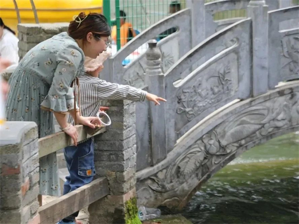 饒峰驛站的親子游樂(lè)園傳來(lái)孩子們的歡聲笑語(yǔ),爛漫且文藝的月季花長(zhǎng)廊下坐滿了游客,高空漂流的入口排滿了長(zhǎng)隊(duì),小朋友在露營(yíng)燒烤的草坪上快樂(lè)奔跑、拍照留影,成為景區(qū)內(nèi)又一道美麗的風(fēng)景線。