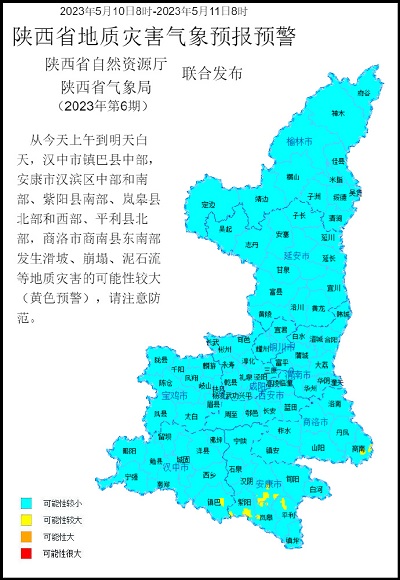 陜西省自然資源廳與陜西省氣象局聯(lián)合發(fā)布地質(zhì)災(zāi)害氣象風(fēng)險(xiǎn)黃色預(yù)警[ III 級(jí)/較重]預(yù)警