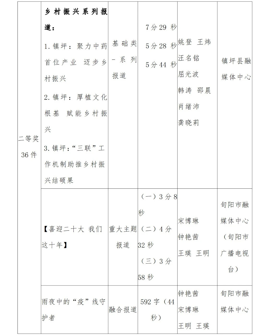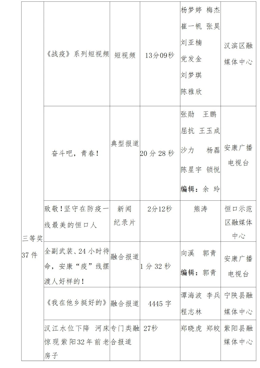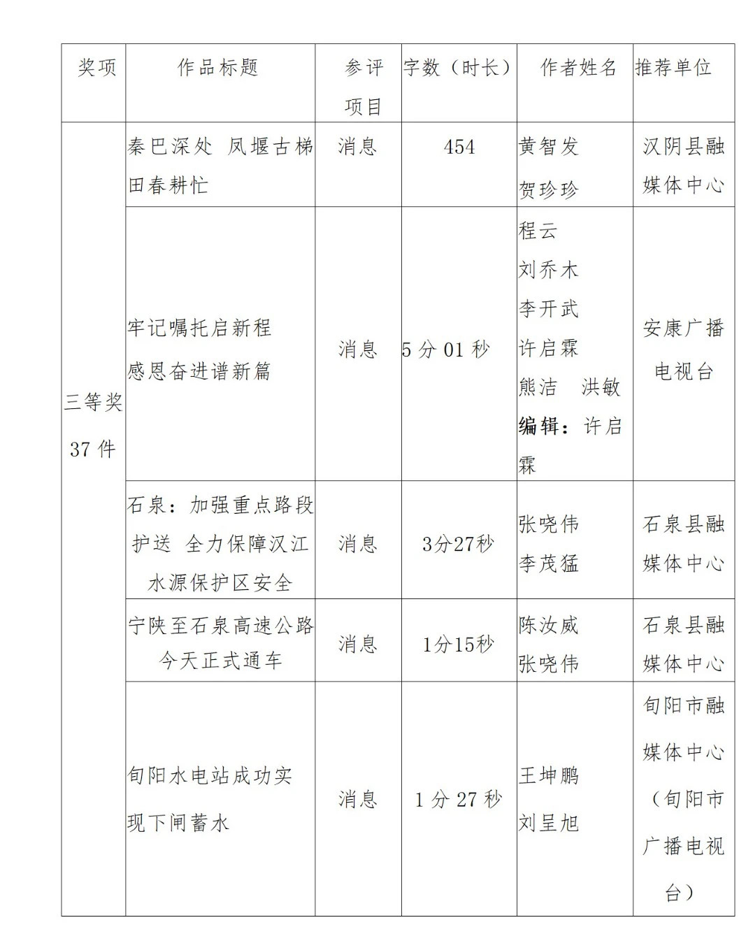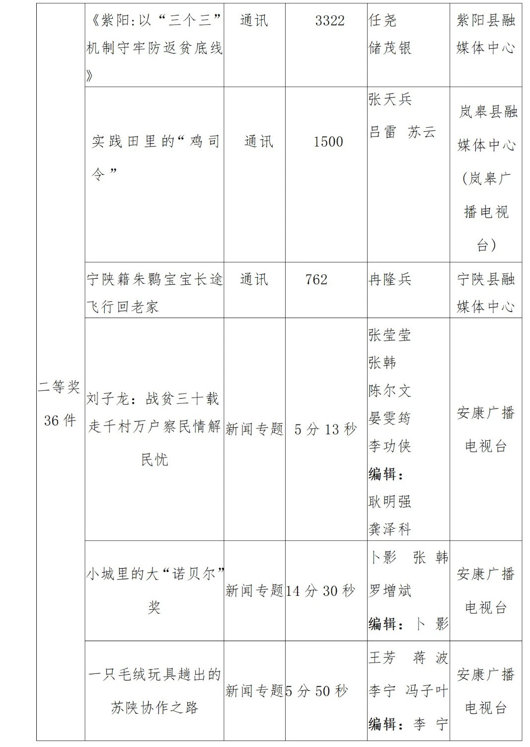 2022年度安康新聞獎(jiǎng)評(píng)審工作在中共安康市委宣傳部的指導(dǎo)下,由市記協(xié)具體組織實(shí)施,經(jīng)過(guò)各申報(bào)單位推薦、初審,市記協(xié)復(fù)審并組織專(zhuān)家定評(píng),評(píng)選出擬獲安康新聞獎(jiǎng)作品96件,其中一等獎(jiǎng)23件、二等獎(jiǎng)36件、三等獎(jiǎng)37件。擬授予姚登等14名同志“安康市優(yōu)秀新聞工作者”榮譽(yù)稱(chēng)號(hào)。