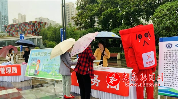 活動當(dāng)日陰雨綿綿,北辰公園人頭攢動。在一排排豐富多彩的宣傳展板和生活垃圾分類成果展區(qū)前,不少市民駐足觀看和詢問有關(guān)情況,工作人員耐心解答并熱情洋溢地宣傳普及生活垃圾分類知識;顒蝇F(xiàn)場還設(shè)置有妙趣橫生的環(huán)保游戲,身著環(huán)保標(biāo)識的“人形玩偶”頻頻與大家互動,在輕松歡樂的氛圍中傳遞環(huán)保理念。