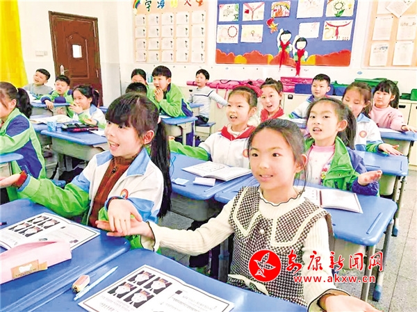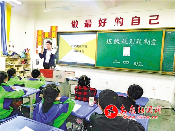5月10日,漢陰縣鳳臺小學班主任郭素婷老師拿著兩只小兔子玩偶,在講臺上聲情并茂講著心理故事,臺下的孩子們臉上掛著開心的笑容。這是鳳臺小學一節(jié)主題為《我的好朋友》的心理健康課程。