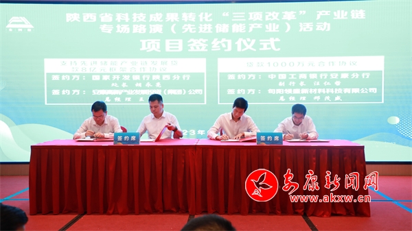 活動前,與會人員共同參觀了安康市先進儲能科技成果展;顒雍炗喠4項總金額為9.05億元的投融資合作協(xié)議。