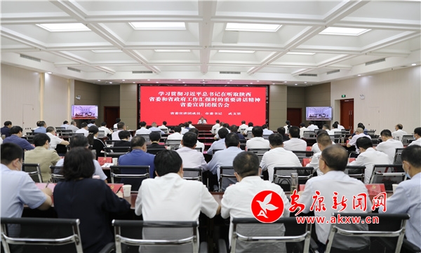 武文罡指出,習近平總書記的重要講話為陜西發(fā)展問診把脈、定盤把向,賦予新的使命新的任務、指出工作重點發(fā)力重點、教授思想方法工作方法,蘊含著堅定正確的政治方向、與時俱進的理論品質、至純至厚的人民情懷、自我革命的內在要求,彰顯了習近平新時代中國特色社會主義思想的真理力量,為我們奮進新征程、譜寫新篇章提供了根本遵循、注入了強勁動力。要深刻領會習近平總書記對陜西工作的肯定勉勵,堅定自覺用習近平總書記重要講話統(tǒng)一思想、統(tǒng)攬全局、統(tǒng)領工作,以勇立潮頭、爭當時代弄潮兒的志向和氣魄,始終不渝沿著習近平總書記指引方向奮勇前進。要深刻領會習近平總書記對陜西人民的關懷厚愛,把感恩之情轉化為牢記囑托、接續(xù)奮斗的高度自覺,轉化為攻堅克難、推動發(fā)展的強大動力,堅定不移緊跟偉大復興領航人踔厲篤行,以實際行動堅定擁護“兩個確立”、堅決做到“兩個維護”。
