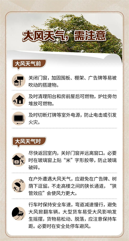 請(qǐng)相關(guān)部門(mén)提前做好短時(shí)暴雨、雷暴大風(fēng)和冰雹等強(qiáng)對(duì)流天氣的防御工作;公眾在發(fā)生雷雨大風(fēng)時(shí)減少戶外活動(dòng),遠(yuǎn)離棚架廣告牌等搭建物;注意短時(shí)暴雨引發(fā)的山洪、滑坡、泥石流等災(zāi)害。