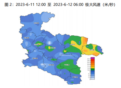 2023年6月11日下午至夜間我市部分地區(qū)出現(xiàn)5~7級(jí)陣風(fēng)天氣。據(jù)統(tǒng)計(jì),2023年6月11日12時(shí)至6月12日06時(shí)全市共有20個(gè)氣象監(jiān)測(cè)站極大風(fēng)力超過6級(jí),全市最大風(fēng)速出現(xiàn)在旬陽仙河鎮(zhèn)氣象監(jiān)測(cè)站25.7m/s,1級(jí)(2023年6月11日16時(shí)43分)。