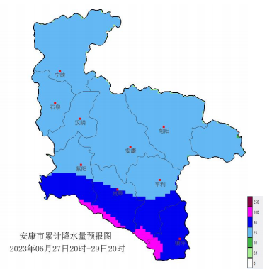 6月25日17時(shí),安康市氣象臺發(fā)布《重要天氣報(bào)告》,6月27日夜間至29日白天,我市有一次較強(qiáng)降雨天氣過程。