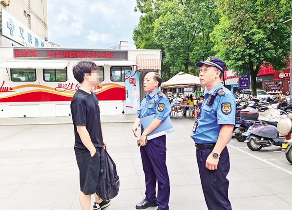 “同志,你的行為違反了《陜西省城市市容環(huán)境衛(wèi)生條例》第四十五條第一款的規(guī)定。”執(zhí)法人員張善偉迅速拍下錄像,向前緊走幾步亮明身份后說(shuō):“剛才你在公共場(chǎng)所隨地吐痰,按照規(guī)定需要現(xiàn)場(chǎng)改正,并處以10至50元罰款。但如果你在微信朋友圈轉(zhuǎn)發(fā)《‘痰’吐文雅 舉‘紙’得體》公益海報(bào)宣傳,點(diǎn)贊5人以上,就可以不用罰款。”張善偉向這名行人詳細(xì)介紹了相關(guān)規(guī)定。