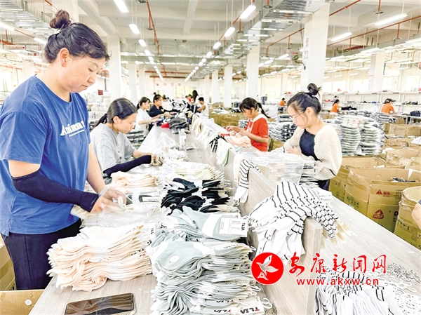 位于漢濱區(qū)五里工業(yè)園區(qū)的安康新樂祥紡織工貿(mào)有限公司包裝車間。 記者 羅偉 攝