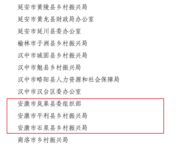 陜西省定點(diǎn)幫扶工作先進(jìn)集體名單