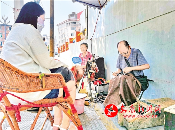 “一天能掙個幾十元也不錯,總比閑著在家里啥事不干強。”趙正根說,有了這個攤位,自己有事干,大家也有個聯(lián)絡(luò)點,也沒指望能在這個攤上掙多少錢,所以收費要比別的地方便宜。就拿換一對童鞋上的魔術(shù)貼來說,自己只收四五元,別的地方可能就要貴一些,釘偏掌我這里收5元,魔刀也是5元,畢竟人家都是拖家?guī)Э诘模约褐皇琼樖,別人方便,自己也不無聊。