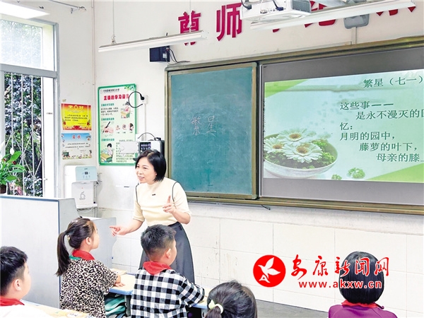 急功近利的教育不是成功的教育,進(jìn)步的過程是一點(diǎn)一滴的積累。呂國文在班級(jí)的文化墻上創(chuàng)辦了《芳草地》欄目,為孩子們提供了一個(gè)文字交流的平臺(tái),再后來,學(xué)校創(chuàng)辦了校刊《月湖》,孩子們有了更大的展示平臺(tái)。她發(fā)起開辦“紅領(lǐng)巾電臺(tái)”,組織開展經(jīng)典誦讀、班干部競選演講、辯論賽、給爸爸媽媽的一封信等活動(dòng),提高學(xué)生的表達(dá)能力。為了讓學(xué)生愛上古詩文,她探索將把古詩、音樂、徒手操結(jié)合在一起,傳承文化的同時(shí)強(qiáng)身健體;把《三字經(jīng)》編成歌曲,用舞蹈的形式呈現(xiàn);把《論語》的經(jīng)典名句選編出來進(jìn)行故事演繹;把《將相和》改成劇本讓學(xué)生分角色扮演。