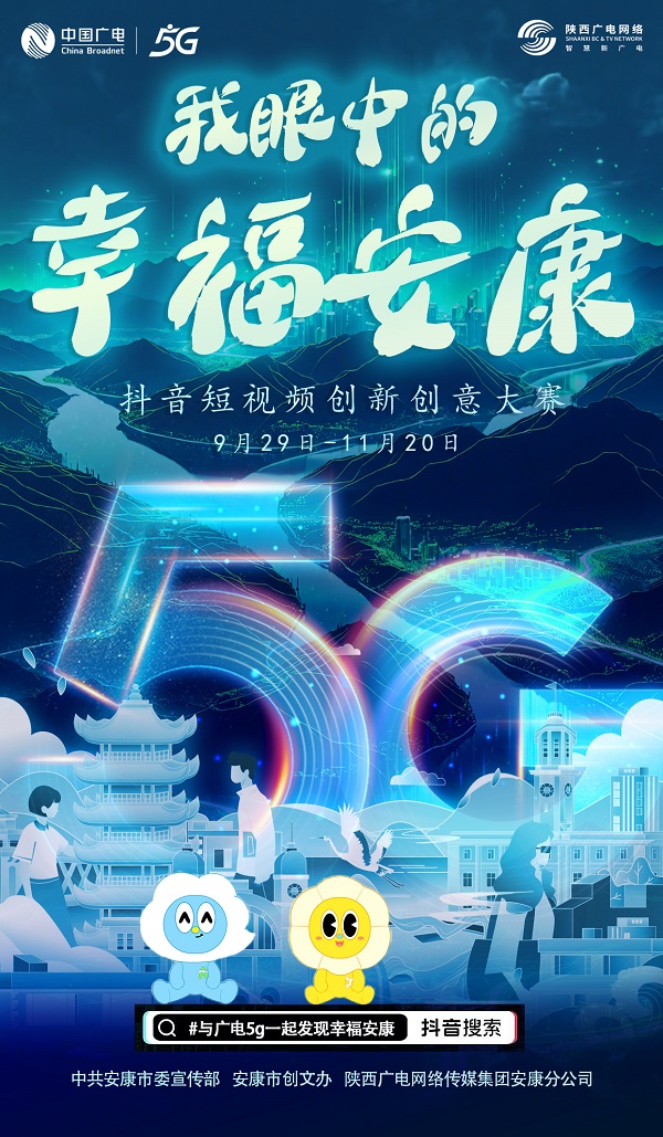 9月29日由安康市委宣傳部、安康市創(chuàng)文辦、陜西廣電網(wǎng)絡(luò)傳媒集團(tuán)安康分公司聯(lián)合舉辦的“我眼中的幸福安康”抖音短視頻創(chuàng)新創(chuàng)意大賽活動(dòng)正式啟動(dòng),全國(guó)網(wǎng)友在抖音平臺(tái)參與“#與廣電5g一起發(fā)現(xiàn)幸福安康”話題挑戰(zhàn),即可參與。