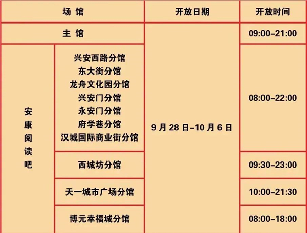 中秋、國慶期間,我市持續(xù)陰雨天氣,為加大文旅惠民力度,豐富文旅服務(wù)供給,提升文旅服務(wù)質(zhì)量,使廣大市民和游客度過一個(gè)安定、祥和、愉快的假期。安康市中心城區(qū)各文博場(chǎng)館10月1日至10月6日將適當(dāng)延長場(chǎng)館開放時(shí)間。安康博物館、安康市群眾藝術(shù)館、安康市藏一角博物館開放時(shí)間延長至晚19:00。安康市圖書館、安康美術(shù)館開放時(shí)間延長至晚21:00。