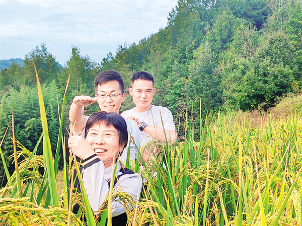 這是我省首例大面積試種成功的“巨型稻”,經(jīng)測(cè)量,平均株高1.6米,部分株高達(dá)1.8米,穗長(zhǎng)約28厘米,是普通水稻的兩倍。“‘巨型稻’一個(gè)穗子有315粒谷子,普通水稻一個(gè)穗子只有171粒。普通水稻在我們這溝田里種植,一畝地產(chǎn)量不到400公斤,但‘巨型稻’每畝產(chǎn)量可達(dá)600公斤以上。今年試種的90畝地,總產(chǎn)量達(dá)到5萬公斤。”盤龍村黨支部書記顏顯琴難掩內(nèi)心的激動(dòng)。