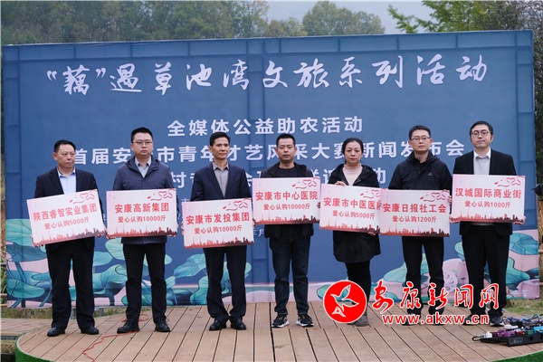 當(dāng)天活動(dòng)同時(shí)吸引了不少愛心單位前來認(rèn)購草池灣優(yōu)質(zhì)蓮藕。通過線上線下互動(dòng),安康市中心醫(yī)院、安康市中醫(yī)醫(yī)院、安康高新集團(tuán)、安康市發(fā)投集團(tuán)等13家愛心單位及新媒體聯(lián)合會(huì)12名網(wǎng)絡(luò)達(dá)人,共認(rèn)購蓮藕54000余斤。