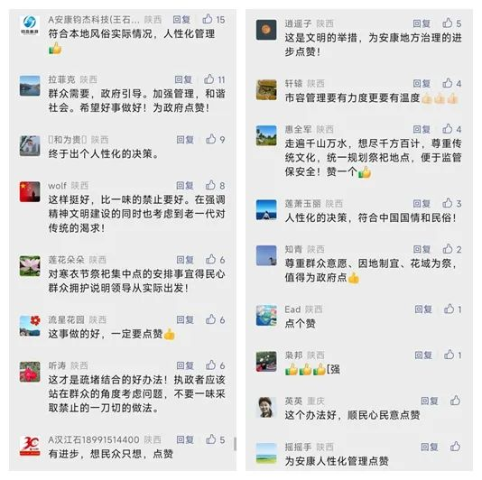 從前期“需要十幾萬(wàn)元的祭祀場(chǎng)地費(fèi)用”,到“幾乎不花錢(qián)”地設(shè)置臨時(shí)集中祭祀點(diǎn)位,既滿足了群眾祭祀需求,又維護(hù)了城市環(huán)境衛(wèi)生和文明形象,還贏得了廣泛贊譽(yù)和民心。“人性化的管理”“暖民心順民意”“城市管理有溫度”……在微信公眾號(hào)留言區(qū)、抖音評(píng)論區(qū),市民對(duì)此舉高度認(rèn)可,好評(píng)一片,反響強(qiáng)烈,也為今后祭祀節(jié)點(diǎn)在中心城區(qū)能夠形成文明祭祀之風(fēng)開(kāi)了一個(gè)好頭。