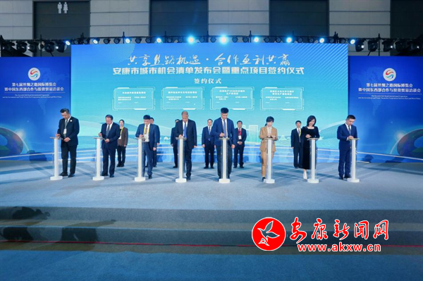 當(dāng)日下午,借力第七屆絲博會平臺,我市在會展中心國際館舉辦“共享絲路機遇·合作互利共贏”——安康市城市機會清單發(fā)布會暨重點項目簽約儀式。王浩出席會議并致辭,周康成主持會議。省商務(wù)廳,西安交通大學(xué)、陜西師范大學(xué)等高校代表,中國建設(shè)銀行陜西分行、陜西環(huán)保產(chǎn)業(yè)集團(tuán)、北方光電集團(tuán)等央企國企和“一帶一路”沿線國家、城市的重點企業(yè),陜西省河北商會、秦商總會等商協(xié)會代表160余人參加會議。