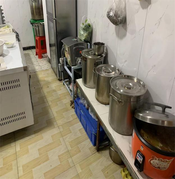 出店經營,后廚臟亂差,物品隨意擺放,衛(wèi)生清理不及時。