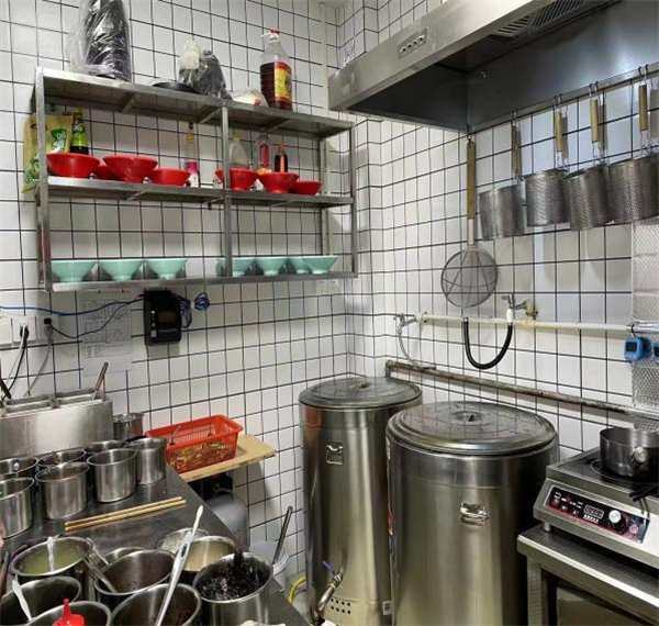 后廚干凈衛(wèi)生,店內整潔,物品擺放有序。