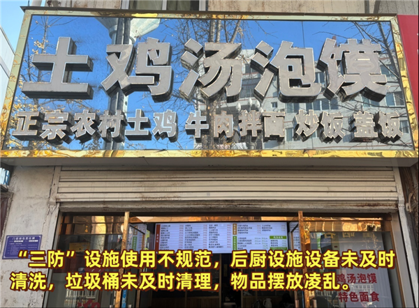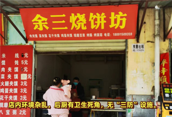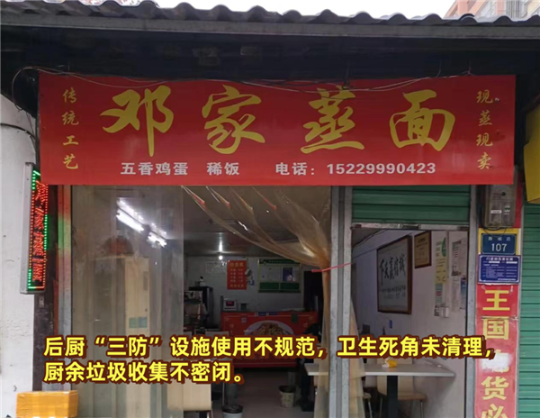 店內(nèi)環(huán)境雜亂,后廚有衛(wèi)生死角,無“三防”設施。