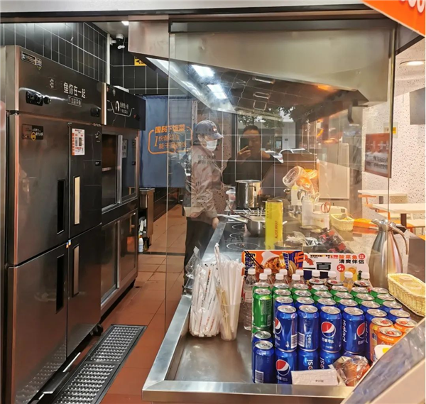 店面衛(wèi)生整潔,布局合理,后廚物品擺放有序、操作規(guī)范。