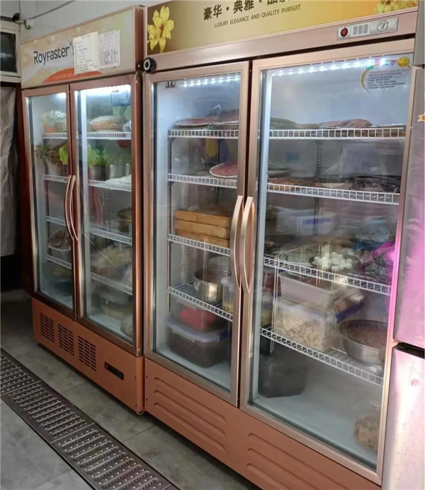 就餐區(qū)和后廚干凈整潔,操作區(qū)擺放有序,冰箱內(nèi)菜品按要求存放。