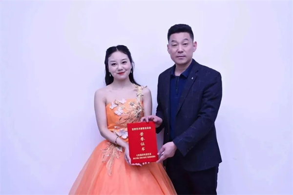 夏梅子榮獲《愛在天地間》春節(jié)聯(lián)歡晚會“一等獎(jiǎng)”,晚會總導(dǎo)演劉相周為其頒獎(jiǎng)