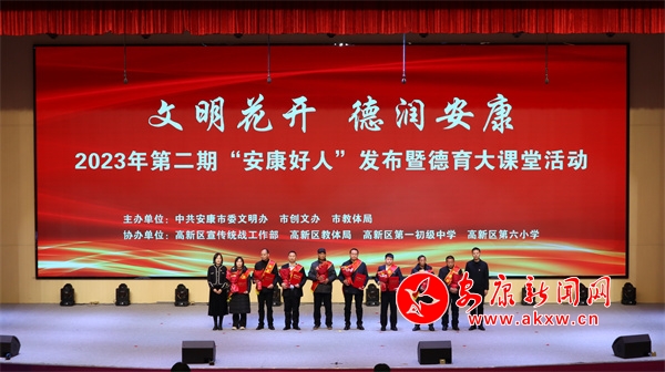 本次活動以“文明花開 德潤安康”為主題,共有33人(組)“安康好人”上榜;顒庸卜譃橹藶闃贰⒁娏x勇為、誠實守信、孝老愛親、敬業(yè)奉獻五個篇章,通過事跡短片展播、現(xiàn)場訪談、宣讀致敬詞、表演文藝節(jié)目等方式,生動展現(xiàn)了“安康好人”的感人故事和善行義舉,深刻詮釋了中華民族的道德內(nèi)涵和精神傳承,為現(xiàn)場學(xué)生帶來了一場生動形象的德育大課堂,F(xiàn)場還向“安康好人”贈送了道德禮遇大禮包。