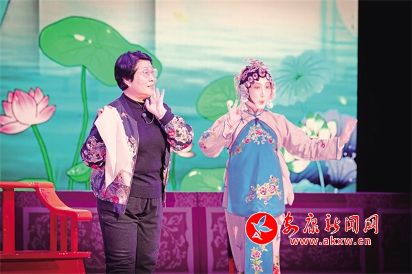 國(guó)家級(jí)傳承人王發(fā)蕓(左)老師指導(dǎo)學(xué)生演出