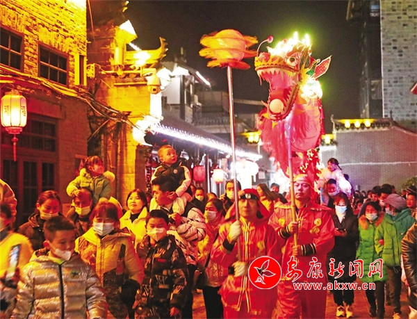 而在龍頭村景區(qū),除夕夜當,游客可體驗傳統(tǒng)的農(nóng)家年夜飯,品嘗“爆竹辭舊歲、幸福大團圓”八大件特色年夜宴,體驗燃放煙花爆竹的新年氛圍。正月初一至正月十五,游客可觀賞舞龍巡游表演、火龍表演、舞獅競技表演、火獅子表演,還有千架無人機空中表演,變化數(shù)字、圖案、文字等創(chuàng)意展示。在“浪漫龍頭、飛屋環(huán)游”熱氣球嘉年華活動,游客還可乘坐熱氣球升空體驗空中觀景,參與變形金剛大黃蜂互動體驗。