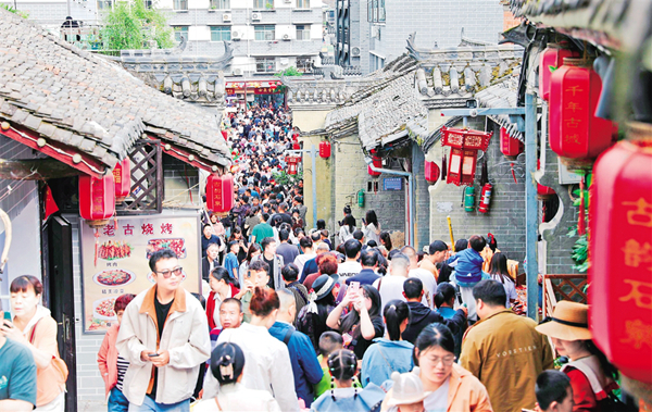 “吃個石鍋魚、品杯柚子茶,再去看特色民俗表演,體驗(yàn)古風(fēng)古韻……”這個“五一”,國家AAAA級景區(qū)漢江石泉古城憑借其古風(fēng)古韻、特色美食和豐富多彩的文旅活動,吸引了全國各地游客前來“打卡”,可謂是贏得了“潑天的富貴”。青磚灰瓦的秦巴老街在陽光下熠熠生輝,絡(luò)繹不絕的游客,或駐足于古色古香的店鋪前聆聽歷史的回聲,或擠坐在火爆的石鍋魚餐館縱享味蕾盛宴,或沉浸于各種傳統(tǒng)文化活動中感受文化的魅力,為老街這幅水墨畫卷賦予靈動的色彩。“五一”假期,石泉秦巴老街開展繪畫攝影展、民俗收藏展、鬼谷子縱橫棋PK、鬼谷子誕辰紀(jì)念活動、手工制作、茶歇、漢服演繹、彈唱、縱橫棋體驗(yàn)、社團(tuán)展演、常態(tài)化將軍巡城、縣令審案、繡球迎親等10多項(xiàng)文旅小節(jié)目演繹活動,以傳承傳統(tǒng)文化為主線,深度推進(jìn)文旅融合,讓各地游客不虛此行。“古色古香的老街風(fēng)情,極具歷史沉淀,加上這些互動性的民俗表演,精彩紛呈,值得一游!”來自寶雞的游客林女士由衷地贊美。