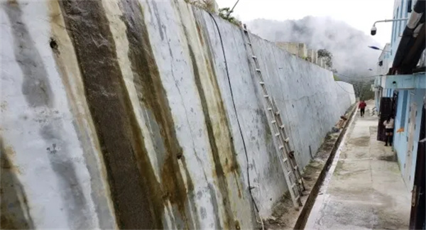 紫陽縣洞河鎮(zhèn)云峰村小米溪溝滑坡治理后修筑的擋墻。吳遠順 攝