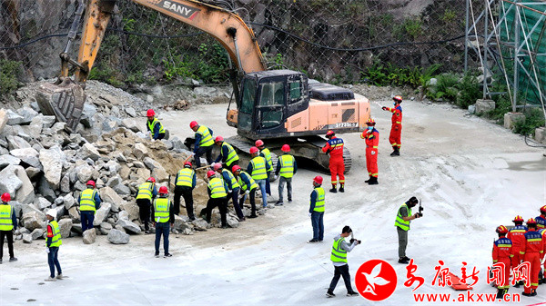 啟動(dòng)儀式上,漢陰縣介紹安全宣傳及應(yīng)急演練情況,市安委辦對(duì)全市安全生產(chǎn)月活動(dòng)再安排再部署。隨后,開展了非煤礦山事故應(yīng)急演練。演練模擬持續(xù)強(qiáng)降雨天氣下,漢陰西鐵義德石料有限公司廠區(qū)出現(xiàn)邊坡坍塌導(dǎo)致人員、設(shè)備被掩埋險(xiǎn)情,市、縣、鎮(zhèn)、企業(yè)四級(jí)應(yīng)急救援隊(duì)伍緊急出動(dòng),展開聯(lián)合搶險(xiǎn)救援。演練過(guò)程中,各小組緊密配合,順利完成了應(yīng)急響應(yīng)、警戒疏散、交通管制、信息上報(bào)、企業(yè)自救、傷員救治、雷達(dá)生命探測(cè)儀救援、無(wú)人機(jī)運(yùn)輸物資等演練科目,模擬險(xiǎn)情得到及時(shí)消除。本次演練場(chǎng)景逼真,貼近實(shí)戰(zhàn),實(shí)現(xiàn)了鍛煉隊(duì)伍、磨合機(jī)制,強(qiáng)化應(yīng)急處置能力的目標(biāo),無(wú)人機(jī)、生命探測(cè)儀等新技術(shù)裝備的運(yùn)用,有效提升礦山應(yīng)急救援能力。