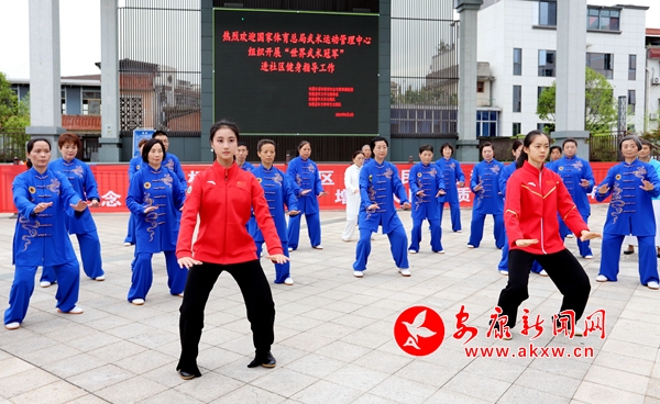 “上午現(xiàn)場觀看盧向成太極劍奪冠的比賽,下午他就來到我們身邊教太極拳,太激動了。”6月4日,呂泰東、楊順洪、盧向成、胡書婷、楊瑾5名世界太極拳冠軍走進安康老年大學廣場,為百余名太極拳愛好者示范講解太極拳。