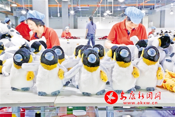6月的驕陽曬得大地一片火熱,偉高仿真毛絨玩具廠生產(chǎn)車間內(nèi),也是一派趕訂單、忙生產(chǎn)的熱鬧場景。一臺臺全自動繡花機和全自動激光切割機飛速運轉(zhuǎn),百余名工人巧手翻飛,一個個做工精美的仿真毛絨玩具快速從“流水線”誕生。公司負責(zé)人龍武臉上掛滿笑容:“我們公司都是訂單式生產(chǎn),現(xiàn)在訂單量很充足,已經(jīng)排到8月份了。產(chǎn)品銷售主要是以歐美為主,覆蓋全球40多個國家和地區(qū)。”